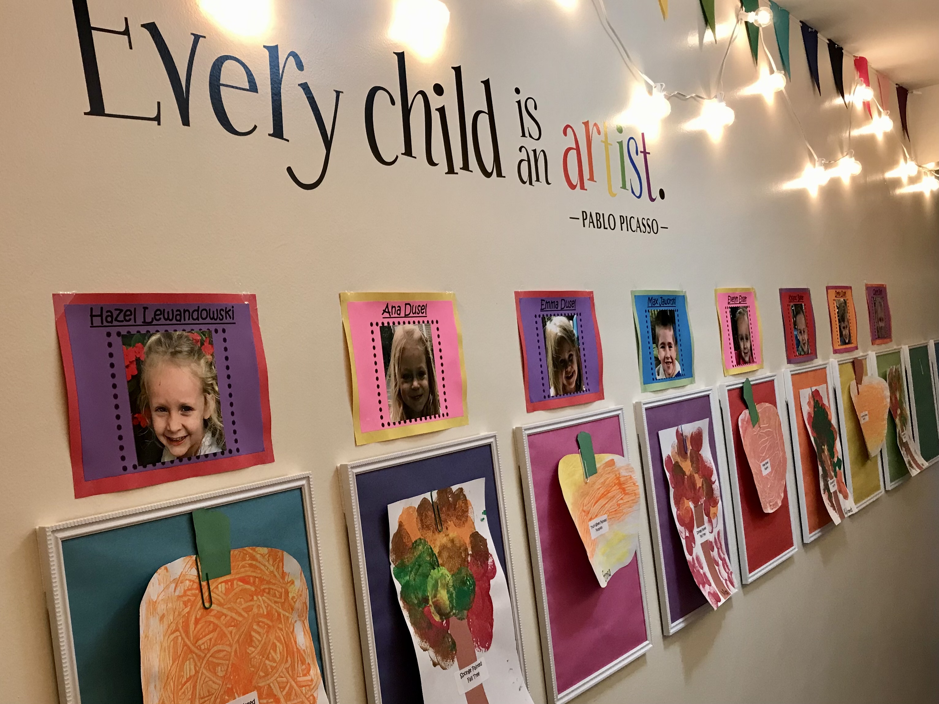 Our hallway is home to the EAPC Art Gallery, a special place where student work is lovingly displayed and highlighted with warm, glowing lights.